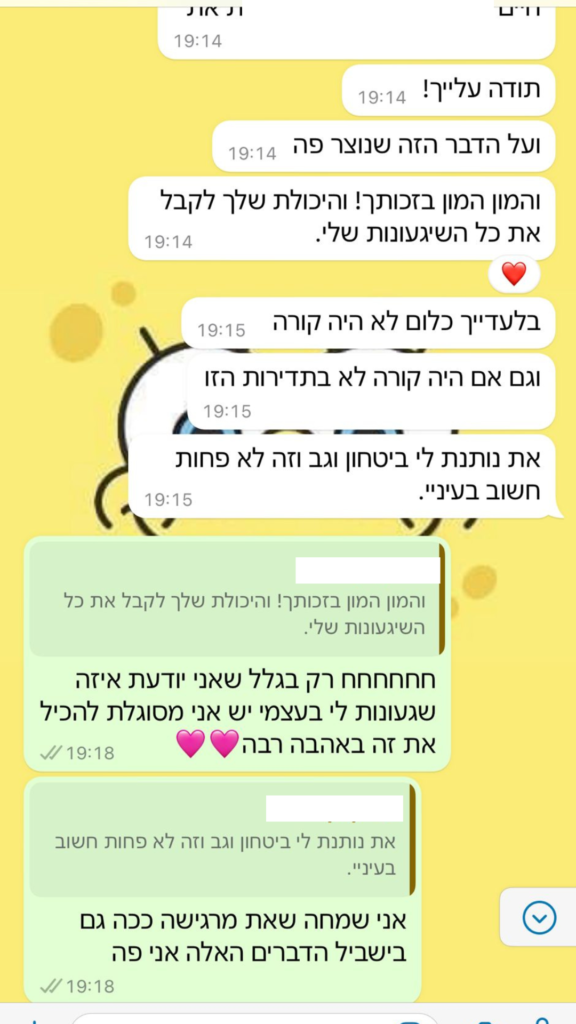 אצלי תקבלי יחס אישי וליווי לאורך כל הדרך,